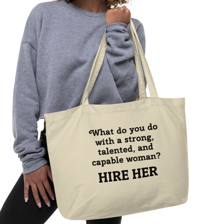 Strong Woman Hire X-Large Tote/Shopping Bag-Oyster