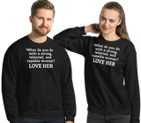 So, what do you do with a strong, talented, and capable woman? Why, love her, of course! Keep It Fun while showing your love of women with this specialty sweatshirt. Made of pre-shrunk 50% cotton/50% polyester fabric that resists pilling, this cozy sweatshirt feels soft and comfortable. The crew neck collar is a spandex rib knit.